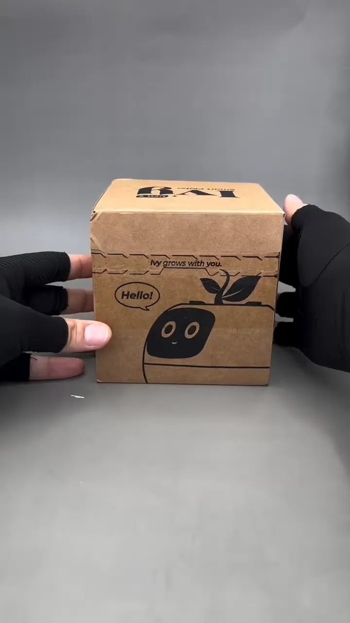 Ivy features a smart self-watering system. The 120ml tank keeps your plant hydrated for up to 2 weeks. Ivy will show a "thirsty" face when it needs a refill.